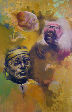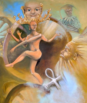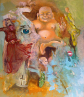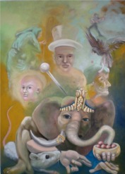 | Ganesha´s rebirth - Öl auf Leinwand, 2007 | Horus, Shiva, der Narr und das Kind, Öl auf Leinwand, 2008 | ||