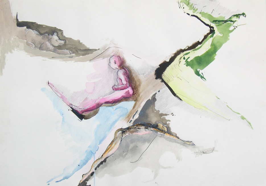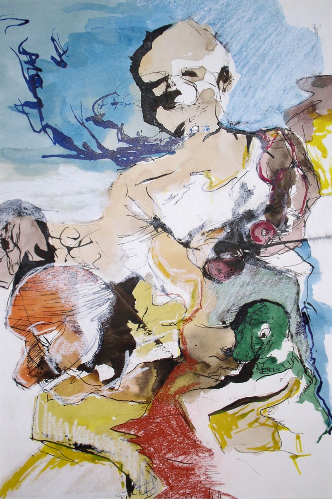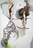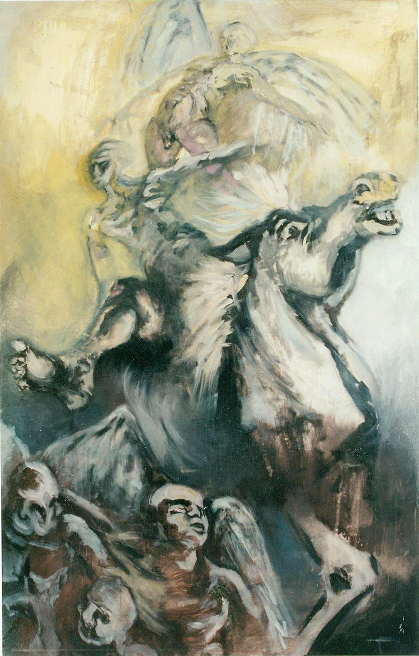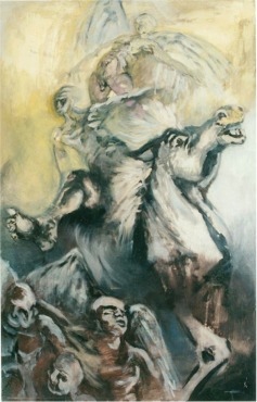 | Schwanger - Eitempera auf Leinwand, 1999 | Der alte Mann sieht den letzten Zug der alten Pferde, Öl auf Leinwand, 2001 | ||