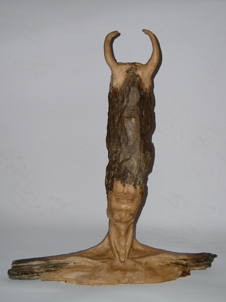 | Banshee (ca 80cm), Holz, Modelliermasse, Ölfarbe | Faun (ca 80cm), Holz, Modelliermasse, Ölfarbe, Wachs | ||